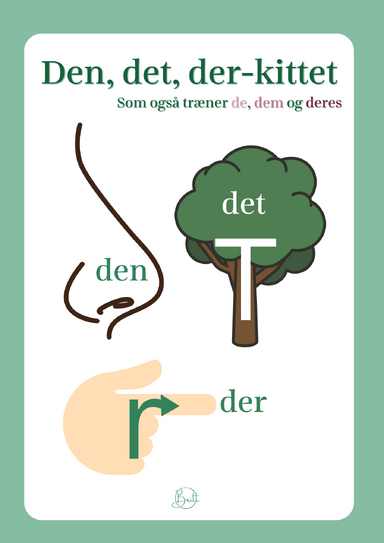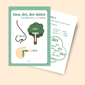 Du får en huskeside, der visuelt og med et lille rim hjælper dit barn til at kende forskel på ordene den, det og der.